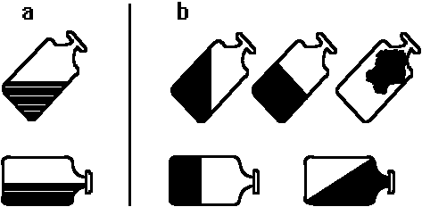 Abb.: Demonstration des Wasserspiegels in der gekippten Flasche (a) und typischer Fehler (b) der Reproduktion